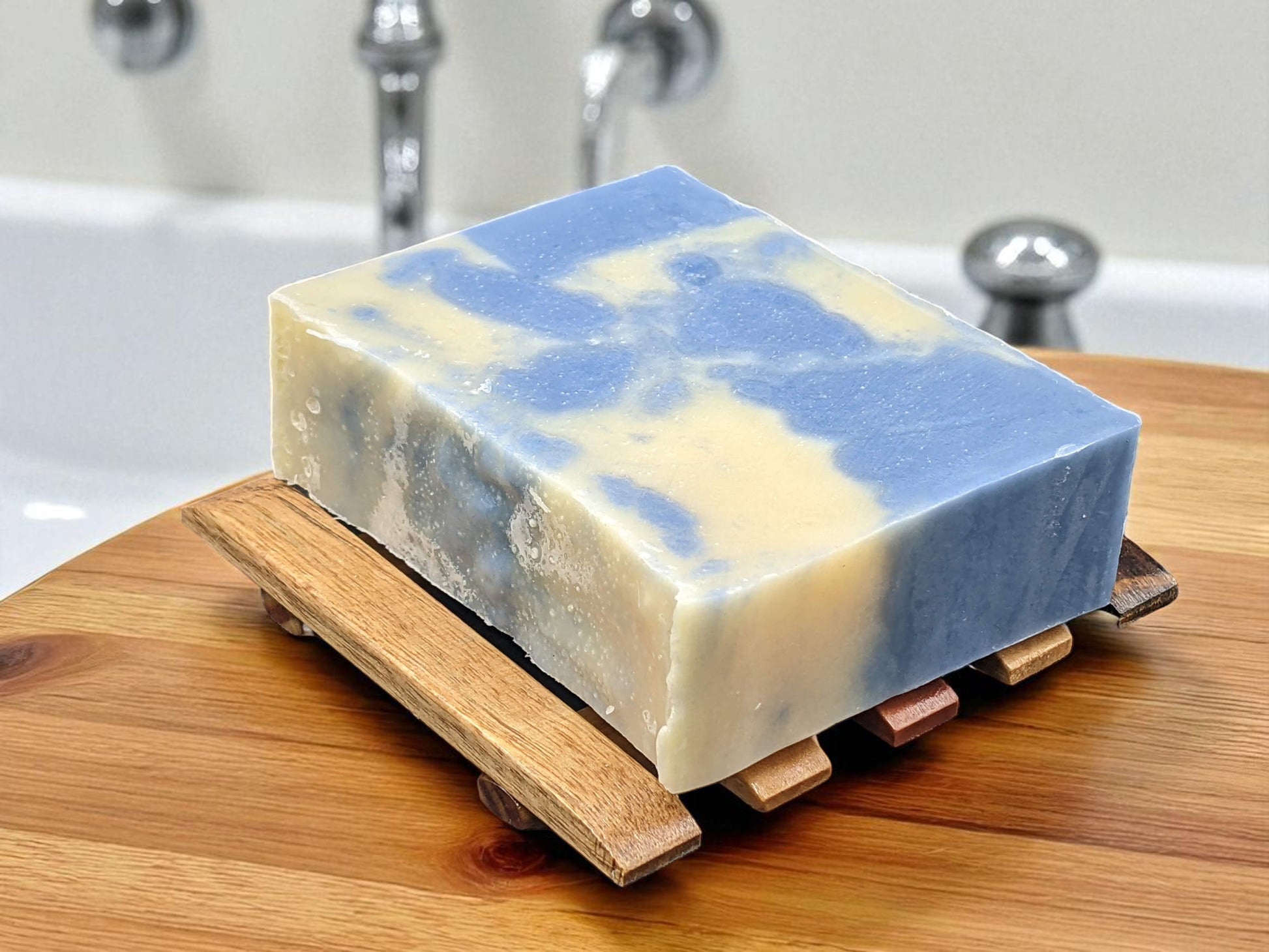 These large 6 oz. bars are hand cut and are approximately 3 ½” wide by approximately 1” thick. Product images are representative of the product, and unique variations in individual bars are typical.
