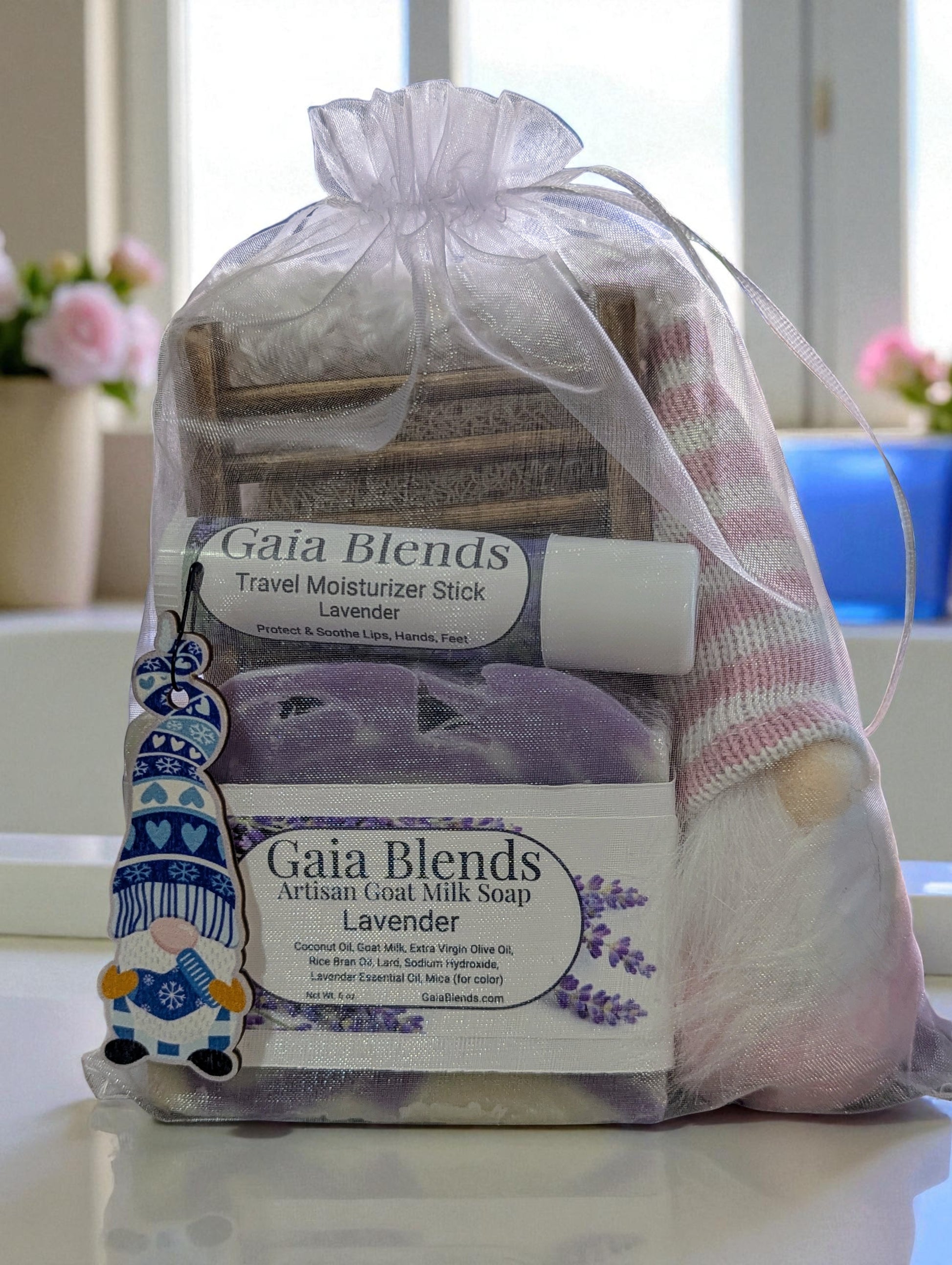 Discover the perfect escape with this captivating bundle that merges lavender's renowned calming properties with charming gnome aesthetics. Designed for those who crave spa-quality relaxation at home, this collection elevates your wellness routine while adding delightful character to your space. An irresistible gift for anyone seeking both tranquility and enchantment.
