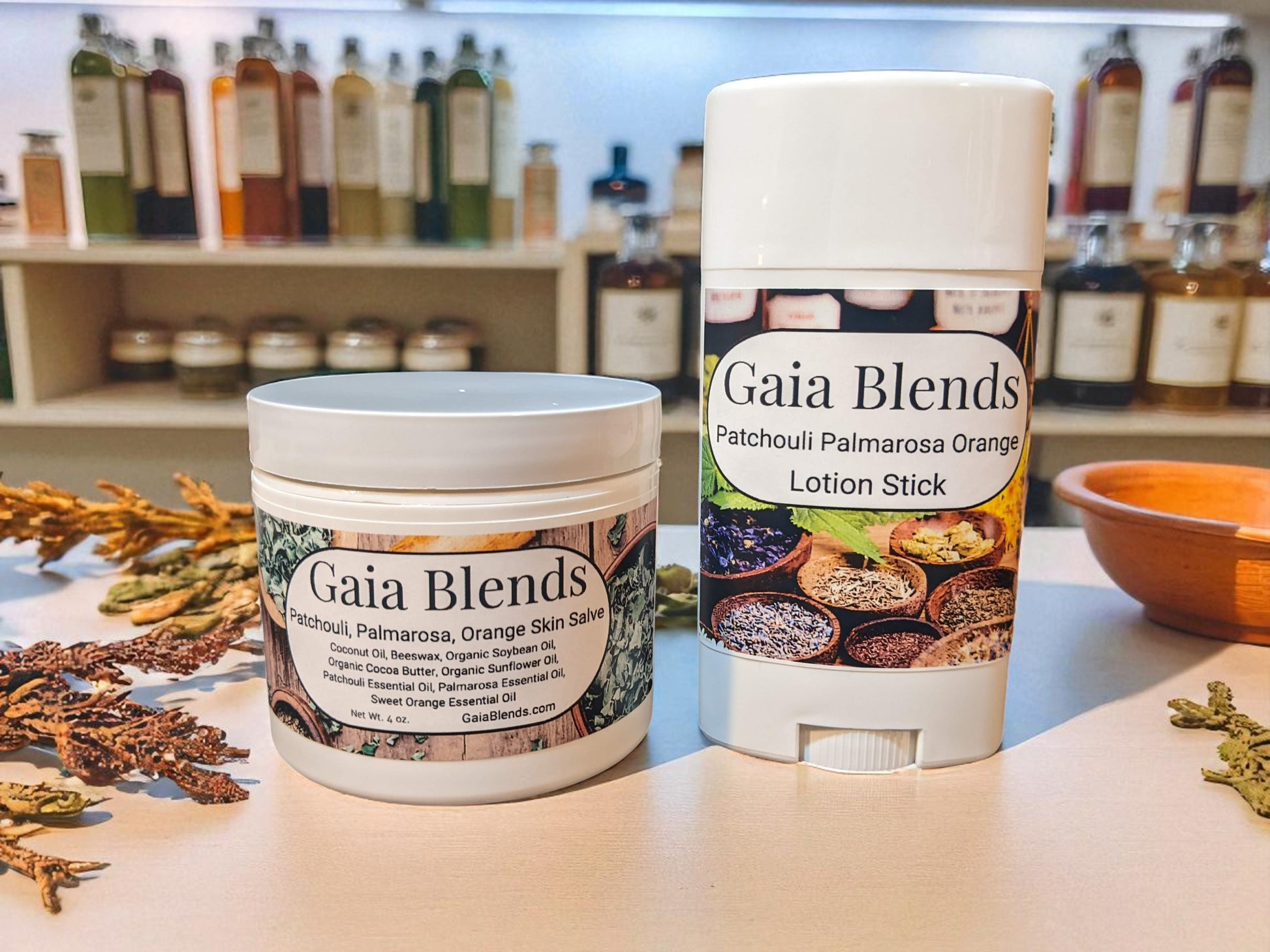 Our Gaia Blends skin salve recipe with added scent. This carefully crafted blend creates a soothing moisturizer that absorbs quickly leaving your skin supple and soft.