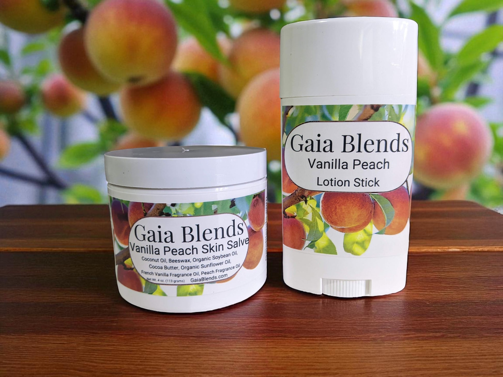 Ingredients: Organic Cocoa Butter, Beeswax, Coconut Oil, Organic Sunflower Oil, Organic Soybean Oil, French Vanilla Fragrance Oil, Peach Fragrance Oil